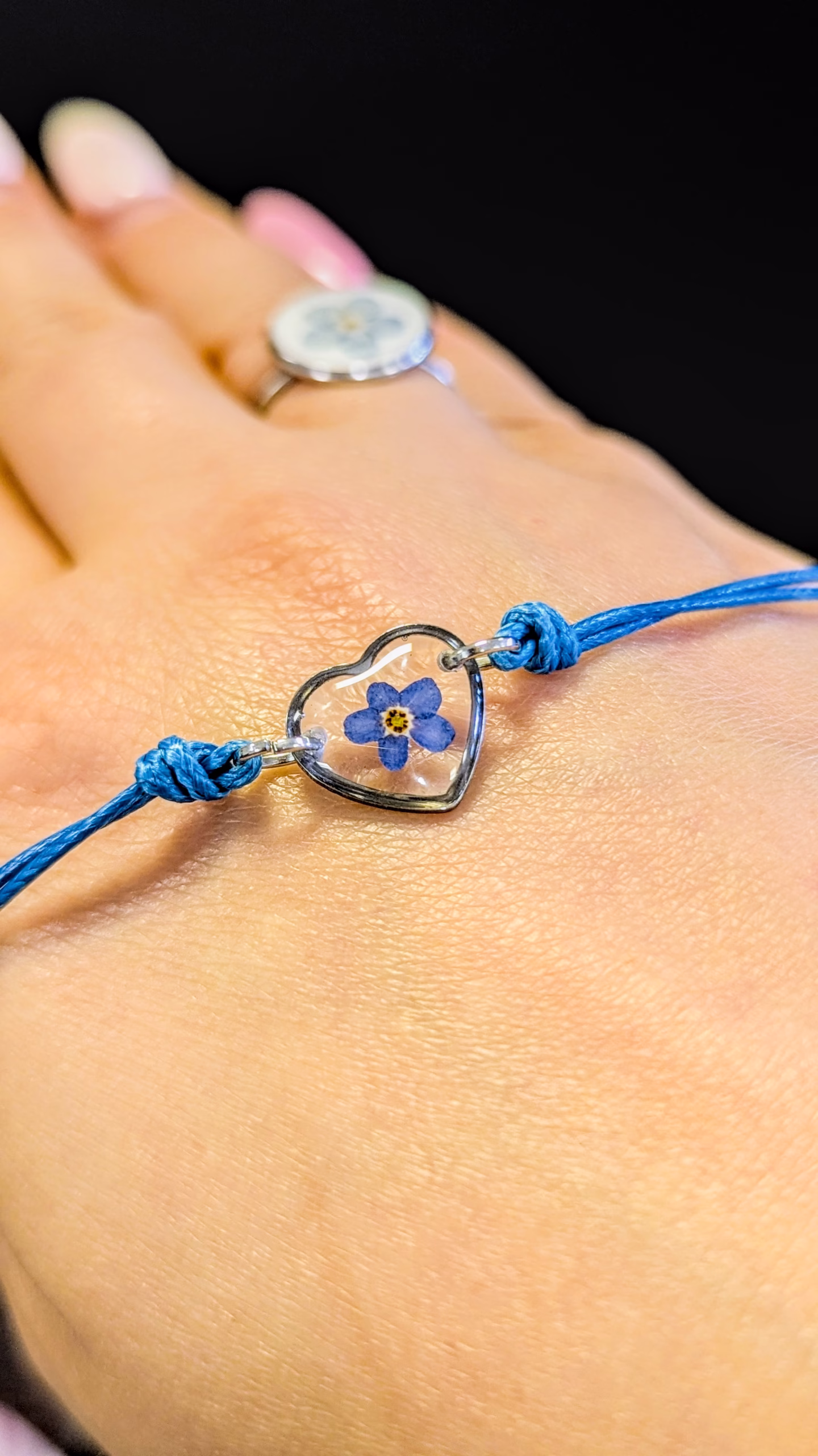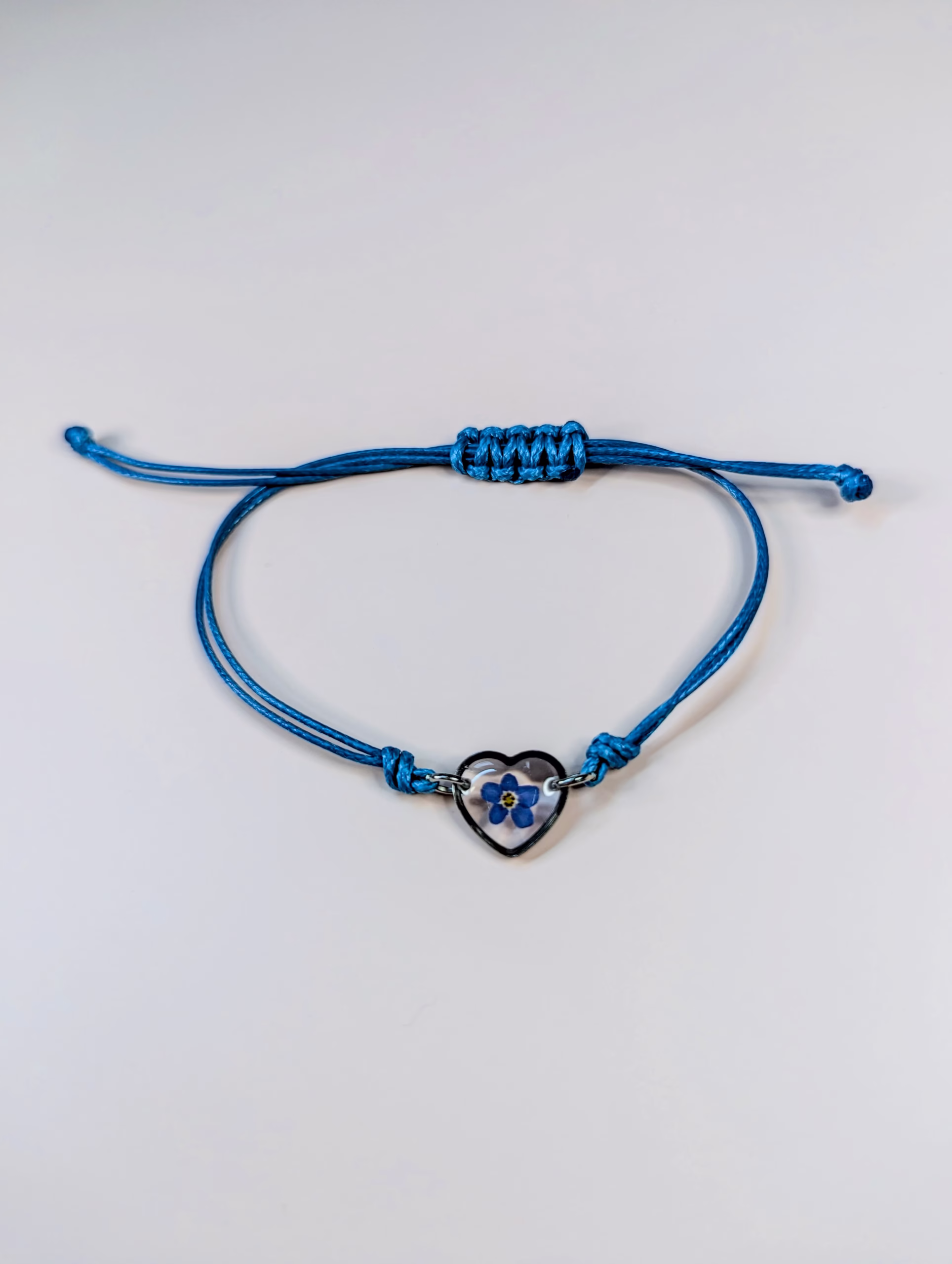 Heart bracelet made out of Forget me not flower embedded in epoxy resin.