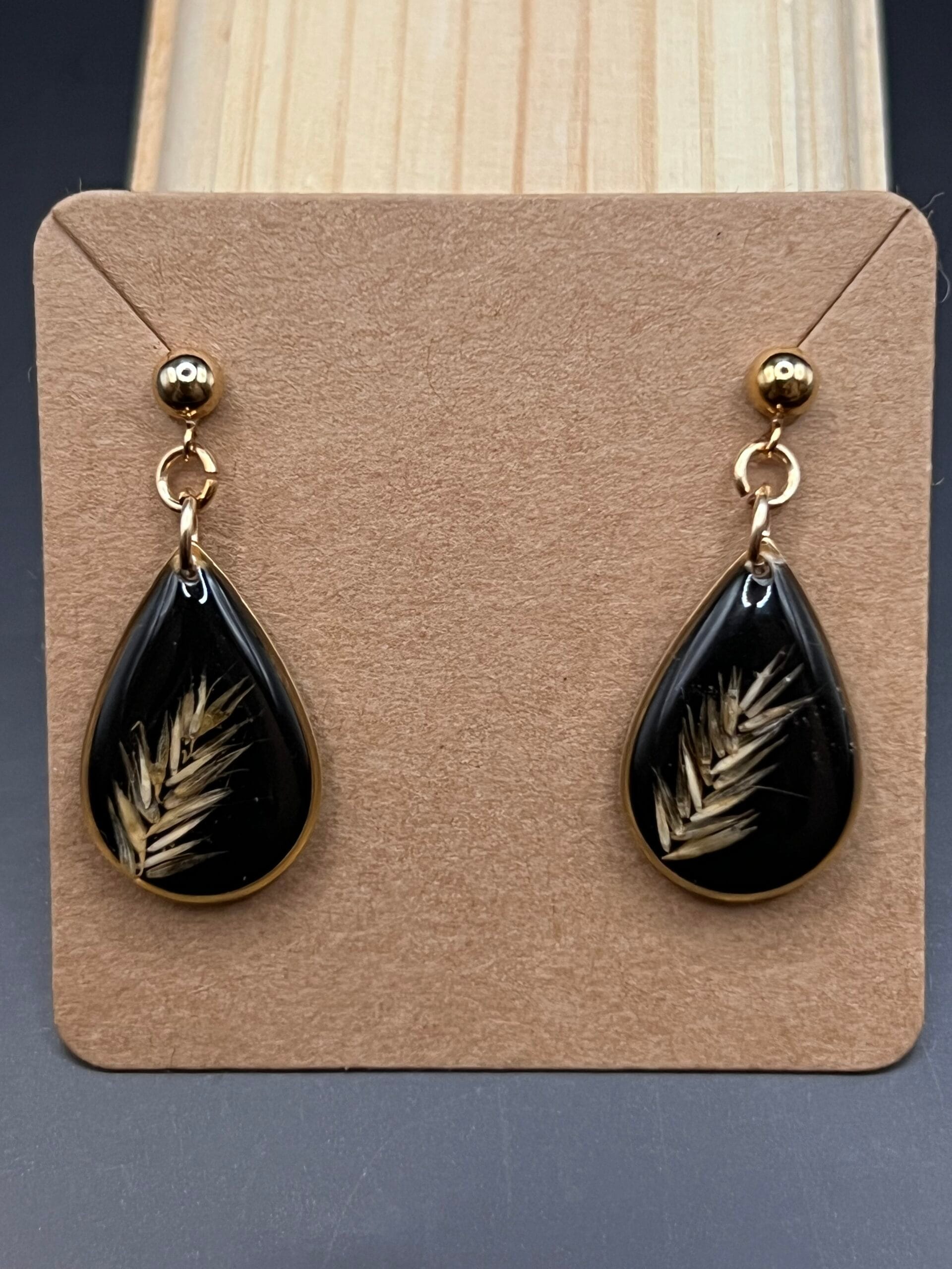 Teardrop earrings made out of Grass embedded in epoxy resin.